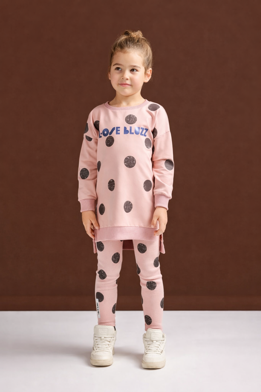 Komplet dziecięcy w modny wzór w kropki, który łączy wygodę i styl. Bluza o luźnym kroju zapewnia swobodę ruchów, a dopasowane legginsy idealnie dopełniają całość. Miękki, przyjemny w dotyku materiał sprawia, że zestaw świetnie sprawdzi się zarówno na co dzień, jak i podczas aktywnej zabawy. Stylowy, a jednocześnie komfortowy wybór dla małych miłośniczek mody. ✨👧