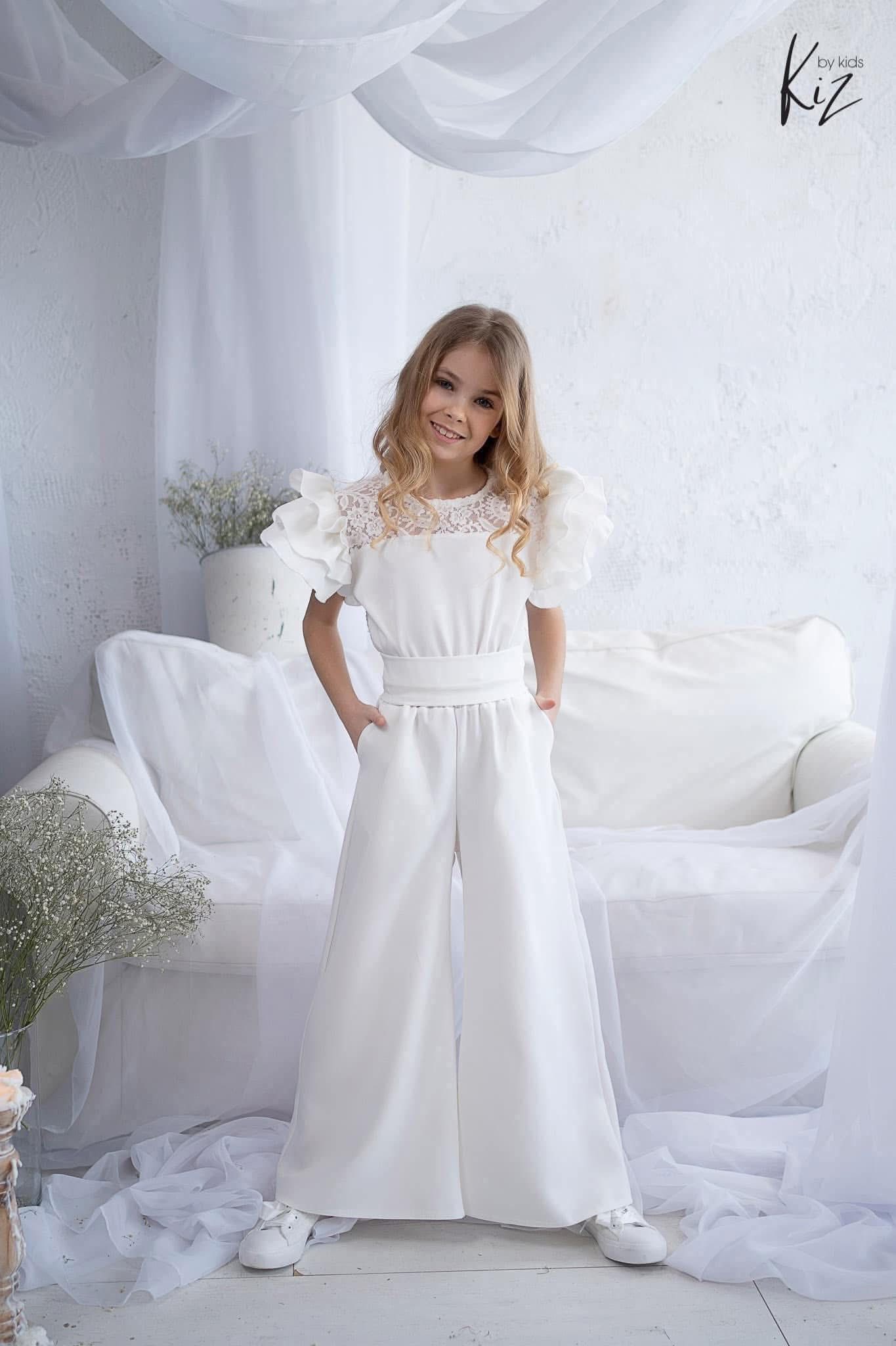 Wyjątkowo stylowy i elegancki kombinezon dla dziewczynki w klasycznym, białym kolorze. To doskonała alternatywa dla sukienki – nowoczesny fason, który pięknie prezentuje się podczas ważnych uroczystości.