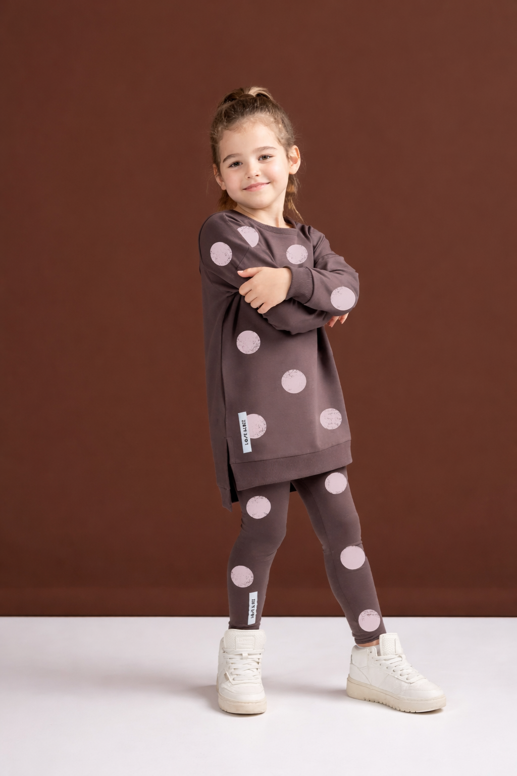 Komplet dziecięcy w modny wzór kropek, który łączy wygodę i styl. Bluza o luźnym kroju zapewnia swobodę ruchów, a dopasowane legginsy idealnie dopełniają całość. Miękki, przyjemny w dotyku materiał sprawia, że zestaw świetnie sprawdzi się zarówno na co dzień, jak i podczas aktywnej zabawy. Stylowy, a jednocześnie komfortowy wybór dla małych miłośniczek mody. ✨👧